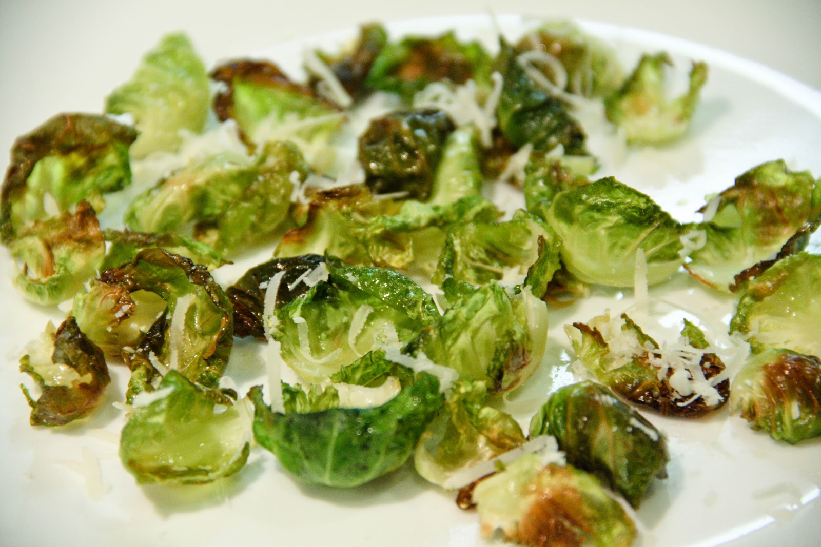 For thanksgiving this year, I wanted to use Brussels Sprouts as one of my sides and decided to make them two-ways: Brussels Sprouts w/Garlic and Butter (a recipe I posted awhile back), and some Roasted Brussels Sprout Chips. These chips are very addicting! They are crispy, thin, and so delicious that I guarantee you will end up eating the entire tray right after you pull them out of the oven. I also topped the dish off with some grated Parmesan cheese, but you can easily omit this for a vegan-option.
